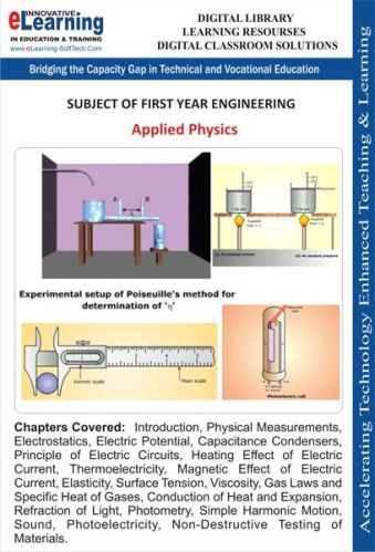 we offer eLearning Software.It covers Basic terms involved, physical measurements, electrostatics, electric potential, capacitance and conductance, thermoelectricity, elasticity, surface tension, viscosity, gas laws and specific heat of gases, conduction of heat and expansion, refraction of light, photometry, SHM, sound, photo-electricity.
