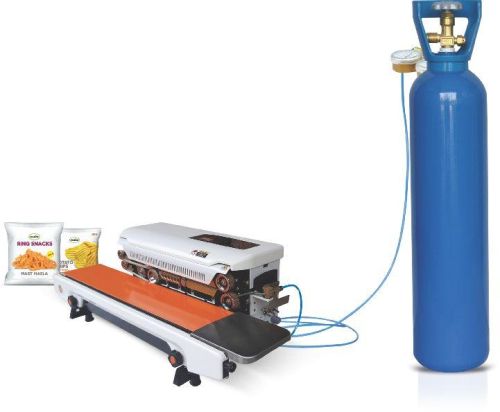 Contact SupplierWe are offering continuous band sealing machine with nitrogen gas flushing. model cs3hg cs3hvg voltage 24050hz 24050hz power 500wpower sealing speed 0-12mmin 0-12mmin sealing width 12 mm 12 mm temperature range 0-300 0-300 dimensions 800*420*320mm 800*420*320mm weight 32 kg 37 kg gas nitrogen nitrogen compressed air supply 6-10 bar 6-10 bar