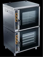 Stainless steel electric double convection oven.. capacity: 6+6 trays.. tray dim: 600 x 400 mm.. digital command panel.. indirect modification.. stainless steel cooking chamber.. thermostat: 70 - 300°c. . interior lighting.. double glass door. . power: 3n / 400 v / 50-60 hz / 16.8 kw.. dim: 910 x 750 x 1550 mm.
