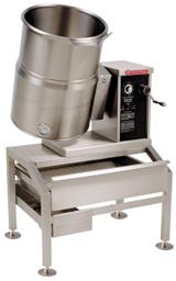 The Market Forge FCT-CE Series tilting kettles can be mounted either directly on your counter or on the optional stand with sink and drain. The 23 jacketed kettle is constructed of welded satin finish, type 316, stainless steel. The heating element can be easily removed for service and will automatically shut off when kettle is tilted to prevent element damage.