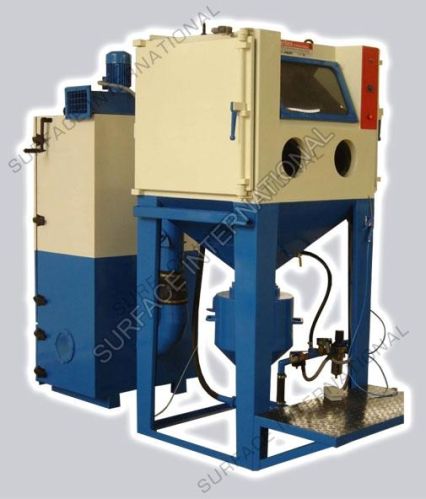 Contact SupplierThis surface pressure blaster is from the family air operated shot blasting machine and is suitable for units with moderate output. The abrasive stream is propelled with high velocity air current creating abrasion on the components. The components can be exposed to the blast stream by maneuvering it under the blasting Stream. If the components are bigger they can be kept on the floor of the blast cabinet or on a rotary table provided as optional accessory. Other optional accessories are motorized tum blast basket & rotary table with mounted track extension. This machine is a manually handled air operated machine. In this machine component is placed in-side the cabinet. One nozzle is provided for blasting purpose; operator put its hand in the Hand gloves section and used the gun/nozzle to blast clean the component. In this system track extension system along with manual turn table can also be incorporated