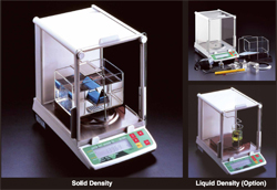 imple measuring procedure allows anyone to use it easilySome of the features are:Densimeter with high accuracy of density resolution of 0.0001g/ccSubstantial function of SOlid and Liquid measurements only about 20 seconds to measureSuitable for plastic pellets, film, rubber, fabric, etc...Capable of measuring volume variation factorCapable of measuring readily floating samples such as urethane sponge, and wood