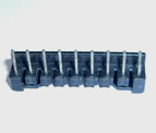 we offer electronic device connector . part size: 45x17x23mm part material: pa66 cav. qty: 1x4 ejection: ejection pins tool size: 350x250x315mm insert steel: h13 gate: sub-gate