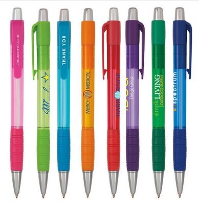 Translucent corporate colors with a grip make this a great pen for your next promotion! Ink ColorPoint Style: Black or blue ink with medium point. Black ink will be provided unless otherwise specified. 5 916" L x 38" Diameter