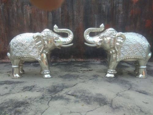 Contact SupplierWe offer a stunning pair of Embossed Silver Elephants crafted from cast metal with an antique silver finish. These exquisite figurines feature intricate hand-etched detailing with embossed floral and tribal motifs, adding a touch of cultural elegance to any space. Standing in a Vastu positive posture with raised trunks, these elephants symbolize good luck and prosperity. Packaged in a foam box with shrink wrap, these matte silver tone elephants make a perfect entry decor piece. With a weight of approximately 800-1 grams, this symmetrical facing pair is a must-have for decorative figurine enthusiasts and cultural accents lovers.