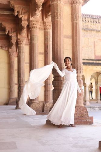 Chanderi Silver Line Floor Length Dress With Dupatta?
