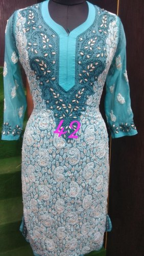 Georgette Chikankari Kurti, Pattern : Embroidered