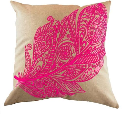 We are offering embroidered pink feather cushion cover it is made of pink color feather embroidered on beige color cotton cloth. Gives a classy look and is very attractive.