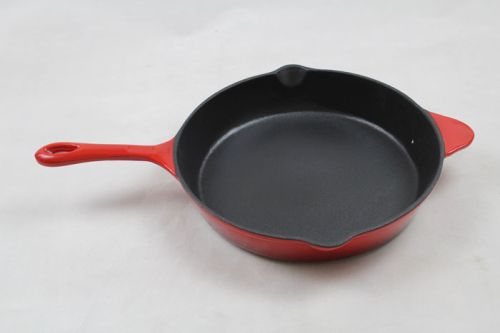 Heavyweight fry pan requires very little oil, making it an excellent choice forlow-fat cooking. Black enamel interior requires no additional seasoning, unlikeother cast-iron cookware. New large  loop helper handle facilitates lifting thepan and provides a better grip even while wearing oven mitts. Enameledcast-iron construction provides superior heat retention. Item No.: EC1037 Size: 50x32x6.5cm Material: Cast Iron Finish: Enamel Packing: Carton Heat Source: Gas, Oven,Ceramic, Electric, Induction