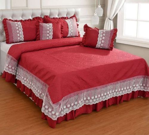 Our Enchanted Frill Design Bed Cover made from pure cotton, this luxurious bed cover measures 90×110 inches and includes two king-size matching pillow covers (20×30 inches). Weighing 1.25kgs, it features a charming frill design, adding a touch of sophistication and comfort to your bedroom decor.
