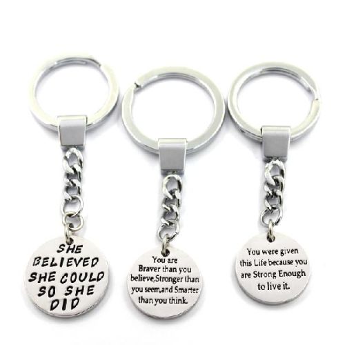 Custom engraved jewelry set design25mm or 30mm alloy disk with hoop keychain ,We are professional in manufacturing accessories for nearly 9 years. and major in fast fashion and quality