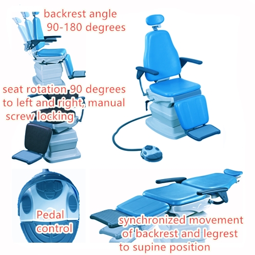 Seat height range: 530-650mm backrest adjustable angle 90-135 seat rotation of 90° on left and right with manual screw locking system pedal for independent movement control.