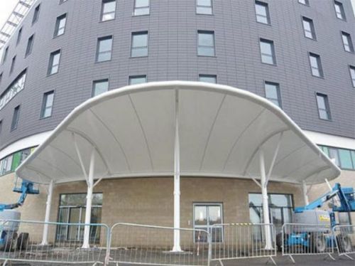 Our wide selection of Entrance Canopies allows you to make welcoming entrance areas that additionally a trendy designer feature to your building. Entrance Canopy tensile structures will highlight the right door for your guests/visitors to use and additionally extend a structure space to form a spacious waiting place and provides your entrance more impact.