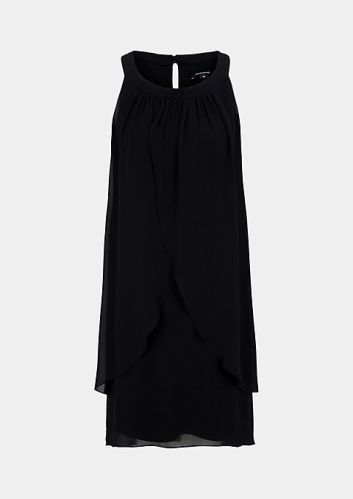 The round neckline has a wide trim Double button fastening with a decorative slit at the back, plus a decorative slit at the front Pleating below the neckline Front in a sophisticated mock layer look