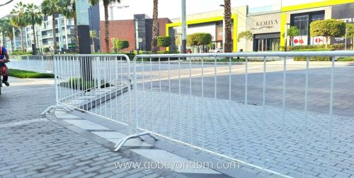 They are often seen at events, demonstrations, concerts, parades, run and construction sites to create designated pathways, restrict access to certain areas, or maintain order. Their modular design allows them to be easily connected and arranged in various configurations to suit different needs. They serve to enhance public safety and security by providing a physical barrier that helps prevent unauthorized access or crowd surges.