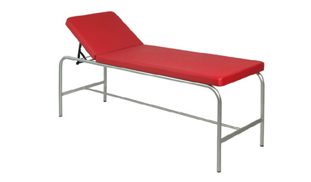 Description : Approx Dimensions: 72”L x 24”W x 32”H Frame work Rectangular & Square Steel tubes. Adjustable Back Rest by hand lever. 2 Section Cushioned top. Legs fitted on PVC stands. Finish : Pre treated & Epoxy Powder Coated.