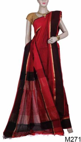 Made of silk and cotton, Red colour saree with wide Brown and Black border with zari work pallu and border- look even more beautiful. It is also known for one of India’s finest fabric, and handloom weaving – Exclusive Handloom Maheshwari Saree's. The graceful & sophisticated design is inspired by the local architecture and striped pallu. Once an exclusive privilege of the royalty has become an established choice of the woman. Free unstitch Blouse piece of this saree.