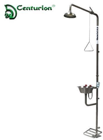 Features Combination eye wash and safety shower Shower activation by pull rod Eye wash activation by flag handle or foot treadle