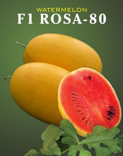 The company is a highly sought-after Manufacturer, Exporter, and Supplier of F1 Rosa 80 Watermelon, which offers fruits yellow skin that are oblong with a thick rind for long shelf life. The F1 Rosa 80 Watermelon matures early at around 62-65 days; with the fruit flesh is deep red, crisp, and sweet like TSS 13.5–14 Brix. The juicy fruits of F1 Rosa 80 Watermelon weigh 2.5-3.5 kg with few small seeds. The company offers high yield F1 Rosa 80 Watermelon with excellent keeping quality.