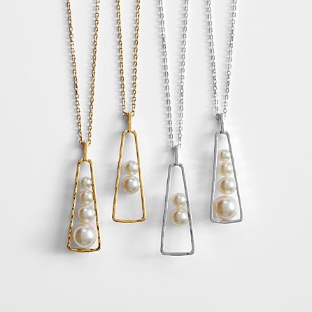 Known as the "Queen of Gems," pearls were once exclusively the property of royalty and the very wealthy. Your leading lady's wealth may be of the more lasting kind – the love of her friends and family. Nonetheless she's still the queen in your kingdom. Celebrate her love by customizing this necklace with a pearl to represent each special family member. Choose sterling silver or gold plated. Select 2-5 pearls to represent family members. Cultured pearls. Chain length measures 17" with 2" extender, pendant length 1-12" Item