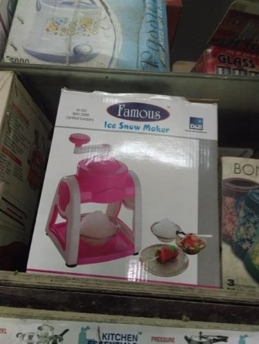 Add style and functionality to your kitchen! Material: Plastic with hardened Stainless steel Now crush ice easily and uniformly for juices and colas with this ice snow maker Handy non- electric appliance Rust proof dispatched as per availability
