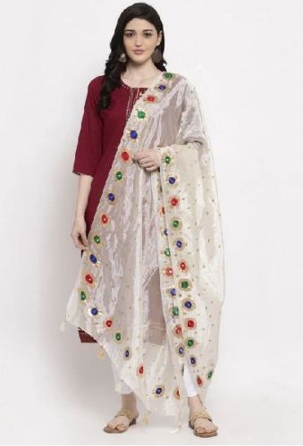 Creamy Printed Silk Dupatta, Technics : Machine Made
