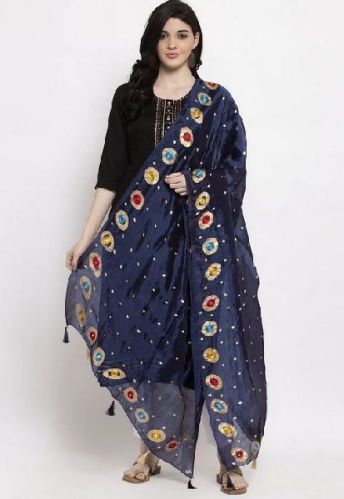 Dark Blue Printed Silk Dupatta, Technics : Machine Made