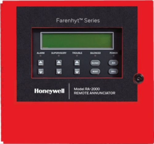 The Farenhyt RA-2000 Remote Annunciator is a sophisticated control and display unit designed to operate and program Honeywell Farenhyt Series Fire Alarm Control Panels (FACPs). With its large 4-line LCD display and user-friendly programmable keys, the RA-2000 enables efficient fire system monitoring and management. It provides a secure, easy-access solution for viewing real-time fire alarm conditions and controlling essential panel functions without requiring special codes or firefighter keys.
