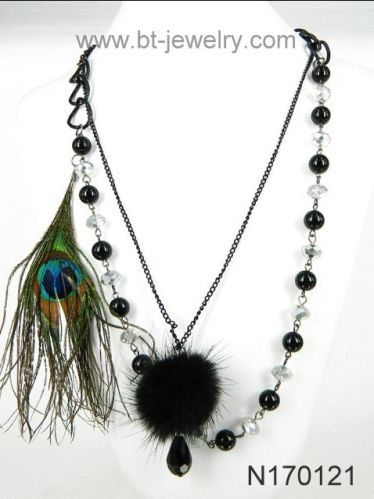 Contact SupplierThis fashion beaded necklace is made by iron chain,alloy,crystal,acrylic,feather and Water leopard fur.