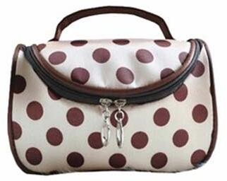 We offer Fashion Polyester Dots Cosmetic Bags Makeup Storage Bag. Length:21cm width:10cm highly:12cm material quality:Polyester inside:zipper pocket,cosmetic mirror,Brush pockets