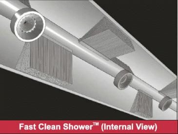 This solution is designed with internal rotating brushes that unplug every nozzle in a matter of seconds. Fast Clean Showers are available in motorized or manually operated versions.