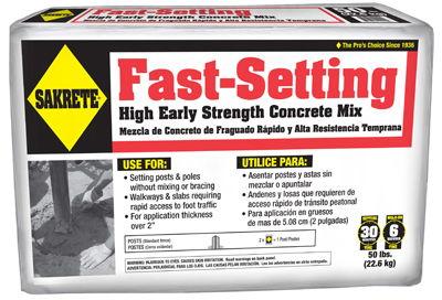 A quality mixture of sand, coarse aggregate, cement and special additives. For setting posts and poles fast and easy. For building or repairing walkways, floors, footings and patios. For applications of 2 inches (50 mm) in thickness or more where rapid strength is needed to allow same day use. This product sets much faster than ordinary concrete and exceeds 5,000 psi when used as directed.