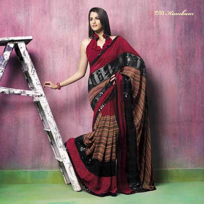 We are offering faux georgette saree. Enhancing the beauty of the wearer, our faux georgette saree is suitable for any occasion. Designed by expert designers, this faux georgette saree is creating new fashion trends. With enthralling designs, the faux georgette saree is a must for every woman.