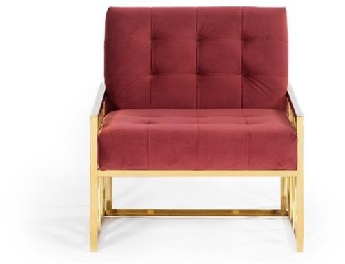A stylish seating solution for modern living room, this set is a must-have for your home. Including one three seat sofa and two extra comfort arm chairs, this trio offers space to comfortably seat up to five. For a look that's sure to set a modern tone in your ensemble, each piece features a clean-lined frame finished in gold glossy with low-back seats wrapped in red-hued and tufted velvet upholstery.