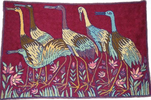 CHAINSTITCH TAPESTRY WOOLEN RUG BIRDS, MULTICOLOR EMBROIDERY 2X3 FE