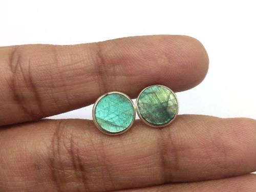 925 Sterling Silver Blue Fire Labradorite Gemstone Stud Earrings