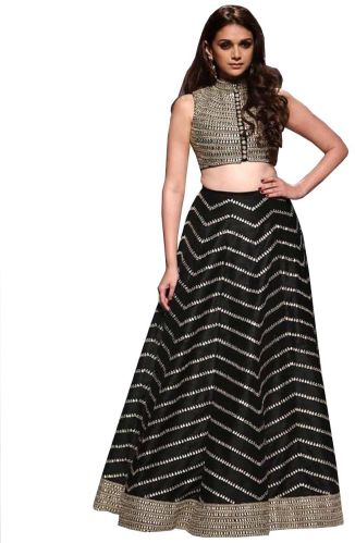 We offer aditi rao black lehenga. This pretty piece is a fairy tale that begins you unfold as you reveal your beauty in it.this black color stones work lehenga add the sense of elegant and glamorous.beautiful and stylized with zardosi embroidery & stones border to give you an attractive look.