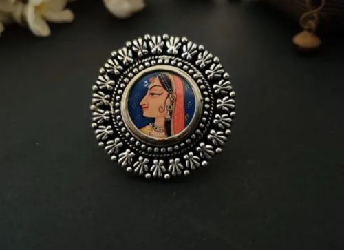 Oxidized Silver Photo Frame Finger Ring, Gender : Female