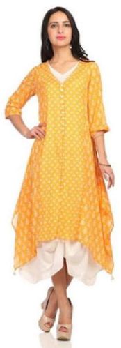 Contact Supplier| Love experimenting with your look? Then this printed dress is something you would really love to add to your dress wardrobe. It has a really interesting inner piece with dhoti style hem complemented by light printed outer, making it a one of its kind dress. Grab it before anyone else and flaunt this summer by combining with strappy heels. |