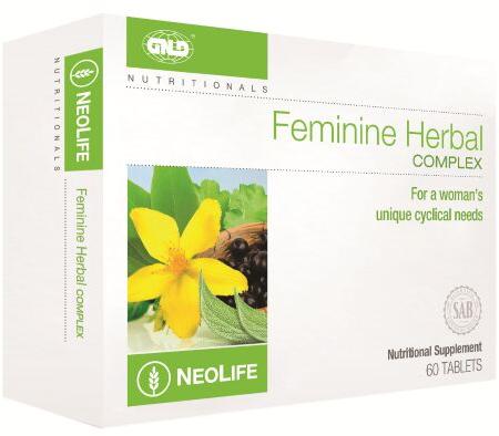 We offer Feminine Herbal Complex. Feminine Herbal Complex contains herbs selected from many global traditions and includes St. John's Wort and Wild Yam which have been shown to relieve low mood, promote a positive mental attitude and support calmness as well as normal female physiology and function. Dosage: 1 tablet morning and evening.