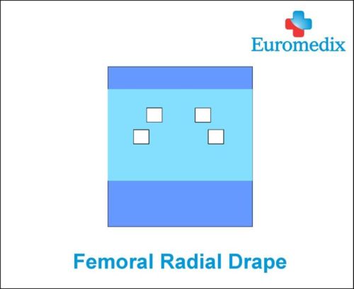 A Femoral Radial Drape is designed to protect the patient from infection during Cathlab procedures such as Angioplasty and pacemaker implantation.