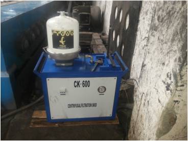 The inlet to the centrifuge is taken from the oil tank and the oil is drained back to the tank under gravity.