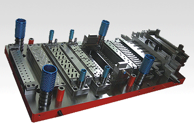 dvb D+EÂ manufactures state-of-the-art fin dies for air conditioner and refrigerator heat exchangers. Our dies are drop-in replacements for Burr Oak or Tridan fin dies. They feature: Flat and V-Waffle (corrugated) surfaces Louvered or Lanced fin enchancement 1, 2 or 4 hole fin progression Feed Progression changer (optional) Adjustable collar heights Rippled or Straight edges Externally or Internally actuated pull feed systems CPM and / or coated cutting elements (optional)