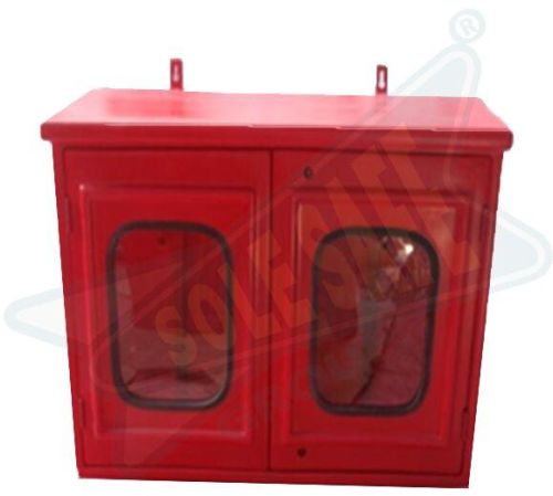 FRP Fire Hose Reel Box fabricated from Fibre-reinforced plastic designed for storage of fire hoses and nozzles which are used in fire fighting operations. This fire hose cabinet has double door with front side glass and key to accommodate two fire hose and one nozzle.Details : This reel boxes consists of double door to keep two hoses of 15meters length and a nozzle. They have SS hinges with brass handles and panel Locks with Break glass recess for keys. The cabinets are self-coloured (Red or Yellow) as per specifications.