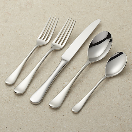 A blending of generations brings a contemporary new shape to the classic finish. Stainless steel flatware with stylish heads and round handles is polished to a silver finish