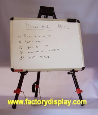 The flipchart is an extremely useful means of communication and an especially suitable solution for situations in which you need to record information. Information can be prepared beforehand at your convenience leaving your attention free, during the presentation, for your audience. The flip chart board features an Aluminum framed white board along with a spring-loaded clip. The board rests on a neat looking tripod folding easel. The easel is powder coated in black color.
