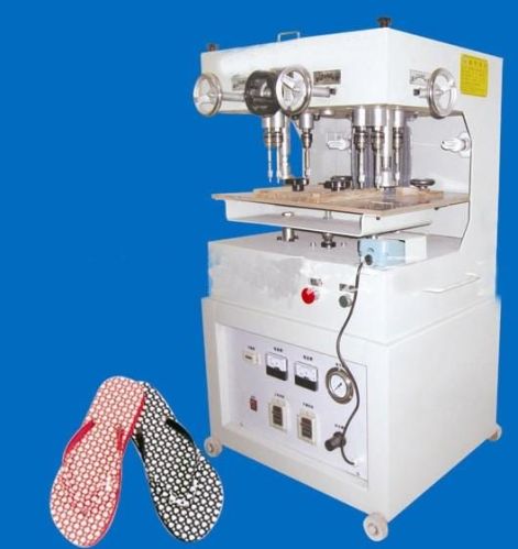 We are offering flip flop sole drilling machine. Plastic slipper sole drilling machine, evarubber sole drilling machine, pvc flip flop drilling machine this machine can drill hole one the sole,one time can drill 6 hole on the sole(one sole 3 hole) for the flip flop. Suitable material: pvc,eva, rubber or other thermoplastic.