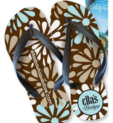 Hit the road with your brand and offer up an excellent casual style option with the eye-catching look and feel of these full color flip flops. They're 10mm wide and are featured in three different sizes, so finding the right fit for your recipients is easy. They're completed with a thick black strap for a comfortable, secure wearing experience. Add your brand with the unmatched brilliance of sublimated imprinting and get feet on the ground when it comes time for your next promotional event