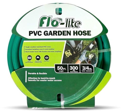 Flo lite 50' light duty hose is a reliable lightweight water hose. the hose features nylon reinforcements and soft gripper makes it suitable for all ages to use. this flexible garden hose has a 3-ply construction and features an easy-to-connect coupling, which makes it simple to securely connect and remove from any outdoor faucet or spigot. it's ideal for use in just about any residential yard and can be used to water the lawn, garden or landscaping, as well as for washing the car or siding on the home and much more.