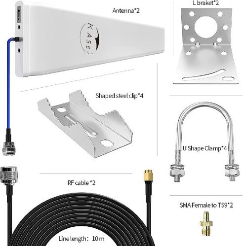 COMPATIBILITY:The external LPDA antenna and low loss HLF/LMR 300 coaxial cable is designed to compatible with 3G 4G 5G LTE GSM Broadband Modem, TPLink Archer MR 100, MR 200, MR 400, MR 600, MR 6400, MR 6500 Router, Huawei B310, B311, B312, B512, B315, B525, B535, B390, B2000, B1000, B593S, E5172 Router, HUAWEI 4G Router 3 Pro, 4G680 N300 Wi-Fi 4G LTE Router, Dlink dwr-921 4G LTE router, Dlink DWR-920V Wireless N300 4G LTE Router, Dlink wireless N300 4G lte router, STRIXSYSTEMS LM101 Router, ZTE MF29T 4G TD-LTE CPE Router, Alfa AWUS036NHA Wireless USB Adaptor, Post office RICT Device, Beetal GSM Landline Phone, Cellular Embedded Module, Remote SCADA DAQ Module, Remote Relay Gate Opener Switch, Lora Gateway, HNT hotspot miner, Helium miner, Wireless HDMI Extender, Receiver Transmitter, mobile wifi signal, amplifier, Card Swipe POS machine  etc.
